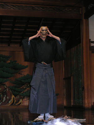 Today we had a welcome party hosted by the Kansai Stanford Club (aka old Japanese men who went to Stanford). This was pretty cool. First they took us to a nearby Noh theater (walking through Shokokuji Temple). There we were treated to a explanation about the Noh play. First he explained some about the stage and how it is designed. All Noh stages have a tree in the background, an entrance to the left (from the Underworld), poles on the sides to hold up the ceiling (and so the actors can see where the edge of the stage is through the small slits for eyes of the masks), and a pit around the stage. Next he showed us a few of the masks (a woman, a man, and a demon). The masks were 300-600 years old. We were then shown several different clothing they use and how they can be worn differently for different characters. He then did some parts of the performance, showing us examples of the singing and the movements for characters. I got a few videos at the end of the album (sorry, a couple of them are sideways, I keep forgetting that I'm taking a video not a picture, I'll have to edit them some time so they are the right way up, until then, just bear with my poor camerawork). After the Noh theater we had lunch. I took a couple of pictures, but since we started eating (I didn't really have a place to put my camera), I put my camera away after that.