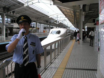 My final day in Kyoto. My host mom came with me to the train station to say goodbye. Since I was meeting people from the company who would help me fill out forms, show me where I was working, introduce me to some people, and then show me to my apartment, I needed to wear my suit. My host mom was pretty sad seeing me go. She was actually crying and ran after the train, waiving as I left. Since I needed to pay attention to work stuff I didn't take any pictures after leaving Kyoto. Basically I met with one person at the train station who introduced me to another person (who arrived at the train station) who would help me with everything the rest of the day. We then went to the main Fujisoft office in Yokohama where I filled out forms, got money, instructions, etc. I saw these chairs in a lobby that I wanted to take a picture of but didn't really want to ask. They were basically two giant keyboard buttons that have "SIT" written on them. I soo want those... Anyway, she then showed me where I was working (on the 5th floor of another building) and I was introduced to bosses. After that we took the subway to Shonandai station and tried to walk to my apartment. I say "tried" because she kinda got lost and couldn't really find where it actually was. A while later we finally arrived at my apartment and we finally got checked in and everything. I'll take pictures of the inside tomorrow.