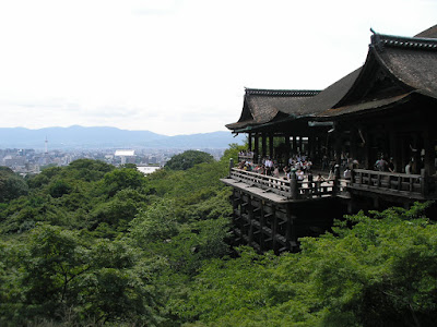 2nd stop: Kiyomizu-dera. "The temple takes its name from the waterfall within the complex, which runs off the nearby hills. Kiyomizu means pure water, clear water or limpid water. It is notable for its vast veranda, supported by hundreds of pillars, that juts out over the hillside and offers impressive views of the city. The popular expression "to jump off the stage at Kiyomizu" is the Japanese equivalent of the English expression "to take the plunge". This refers to an Edo period tradition that held that, if one were to survive jumping from the stage, one's wish would be granted." (from wikipedia). The walk up to the temple is lined with shops on either side. I also saw this cute little dog with a ninja outfit on. You really get a nice view of Kyoto from the temple. I decided to stop and get lunch there. Somen and strawberry shaved-ice make me happy. I also drank from the "Otowa-no-taki, the waterfall where visitors drink for health, longevity, and success in studies." (wiki). You use these metal cups (all sanatised) attached to these long poles to get the water. There was also the "Jishu-jinja, a matchmaking shrine" (wiki again...) there with "love stones". I took a picture of the instructions.